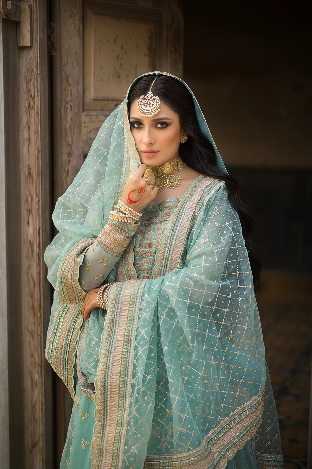 EMBROIDERED & EMBELISHED FRONT BODY ORGANZA.